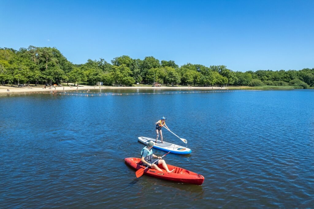 Louez un kayak ou un paddle pour profiter d’une belle balade sur l’étang des Bois et explorer l’ensemble de la base de loisirs en toute liberté.